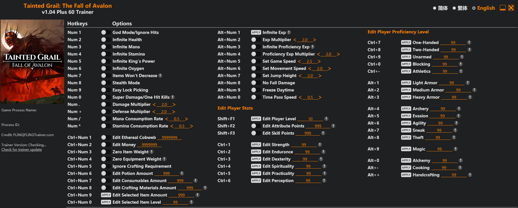 - 게임 중 트레이너에 표시된 키를 누르세요.