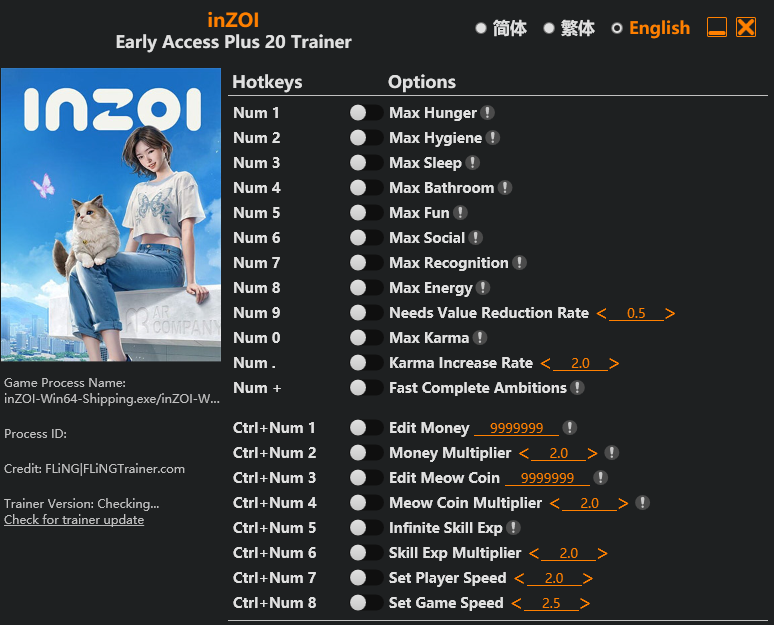 - 게임 중 트레이너에 표시된 키를 누르세요.