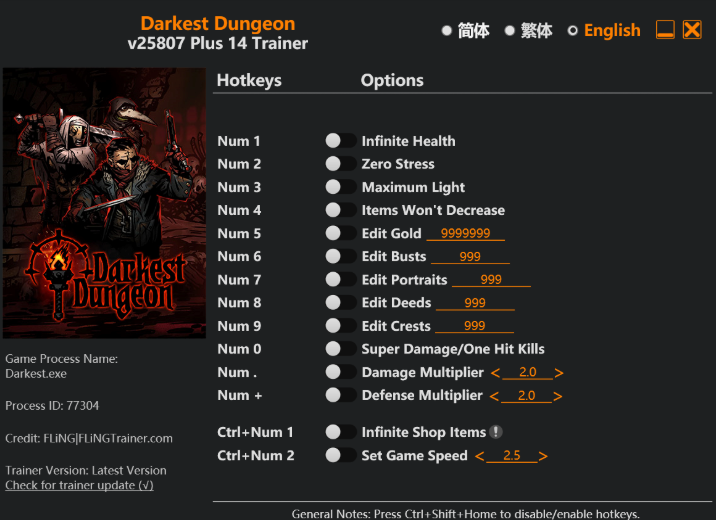 - v25807부터 트레이너는 64비트 게임 버전을 지원하며 32비트 게임 버전은 더 이상 지원하지 않습니다.