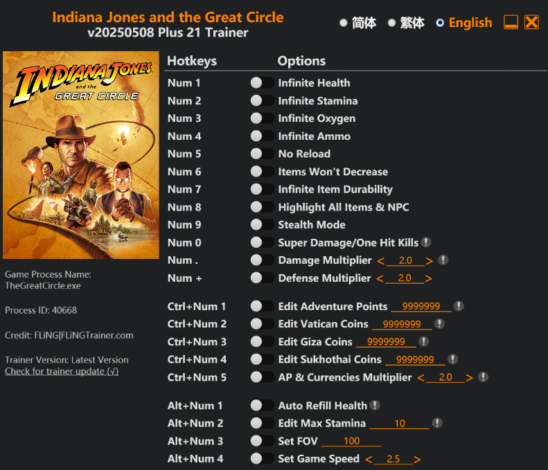 - 트레이너가 제대로 작동하려면 적절한 버전과 에디션의 게임이 설치되어 있는지 확인하세요.