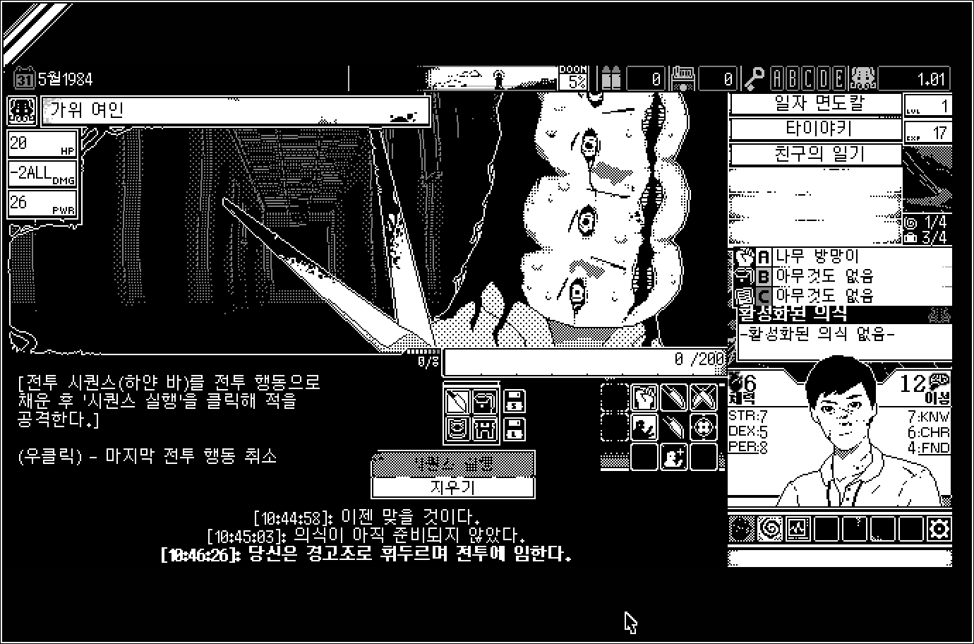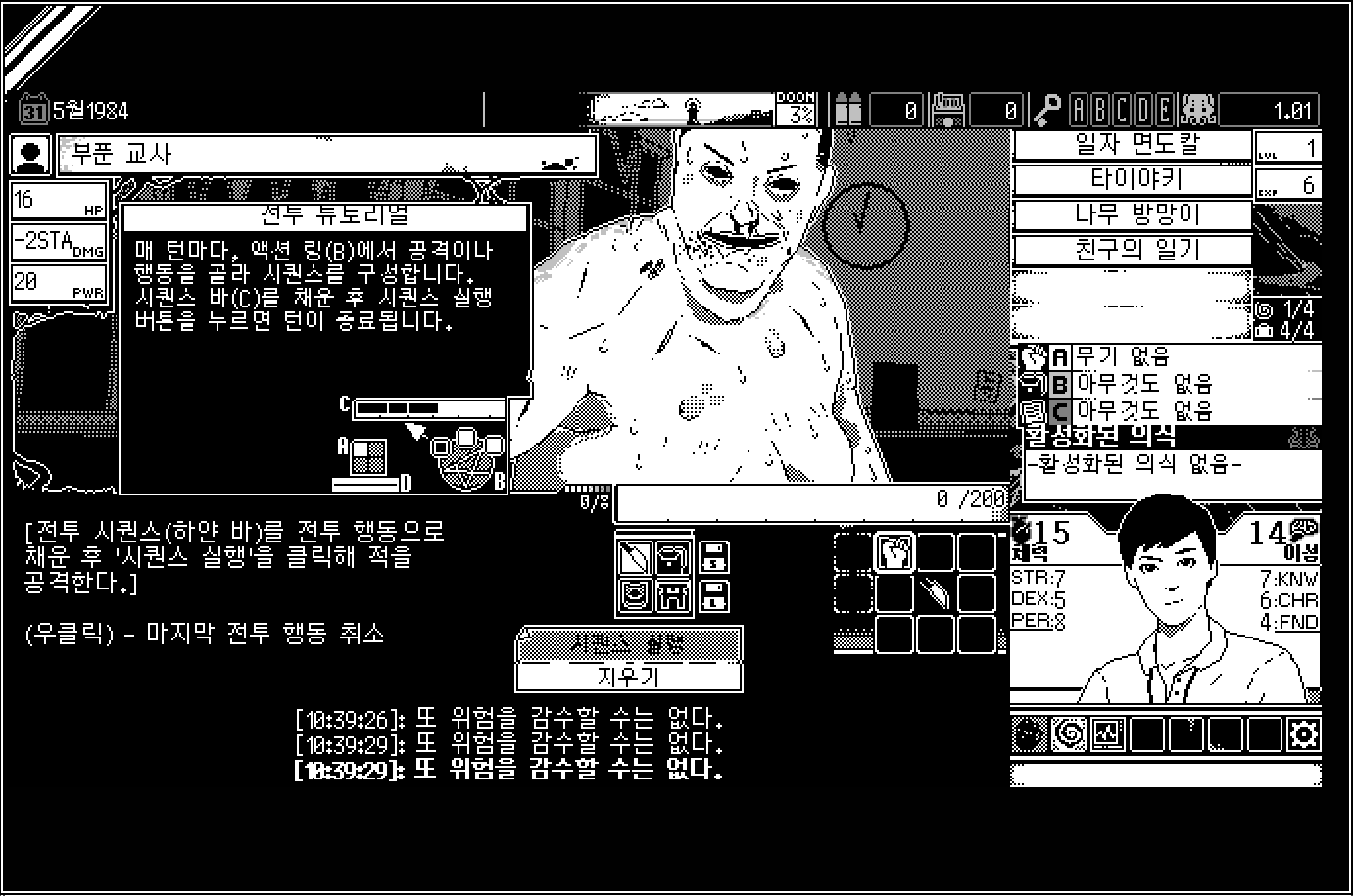 전투는 공격, 회피, 부적 같은걸 직접 선택해 실행하는 턴제 방식에 게임입니다.