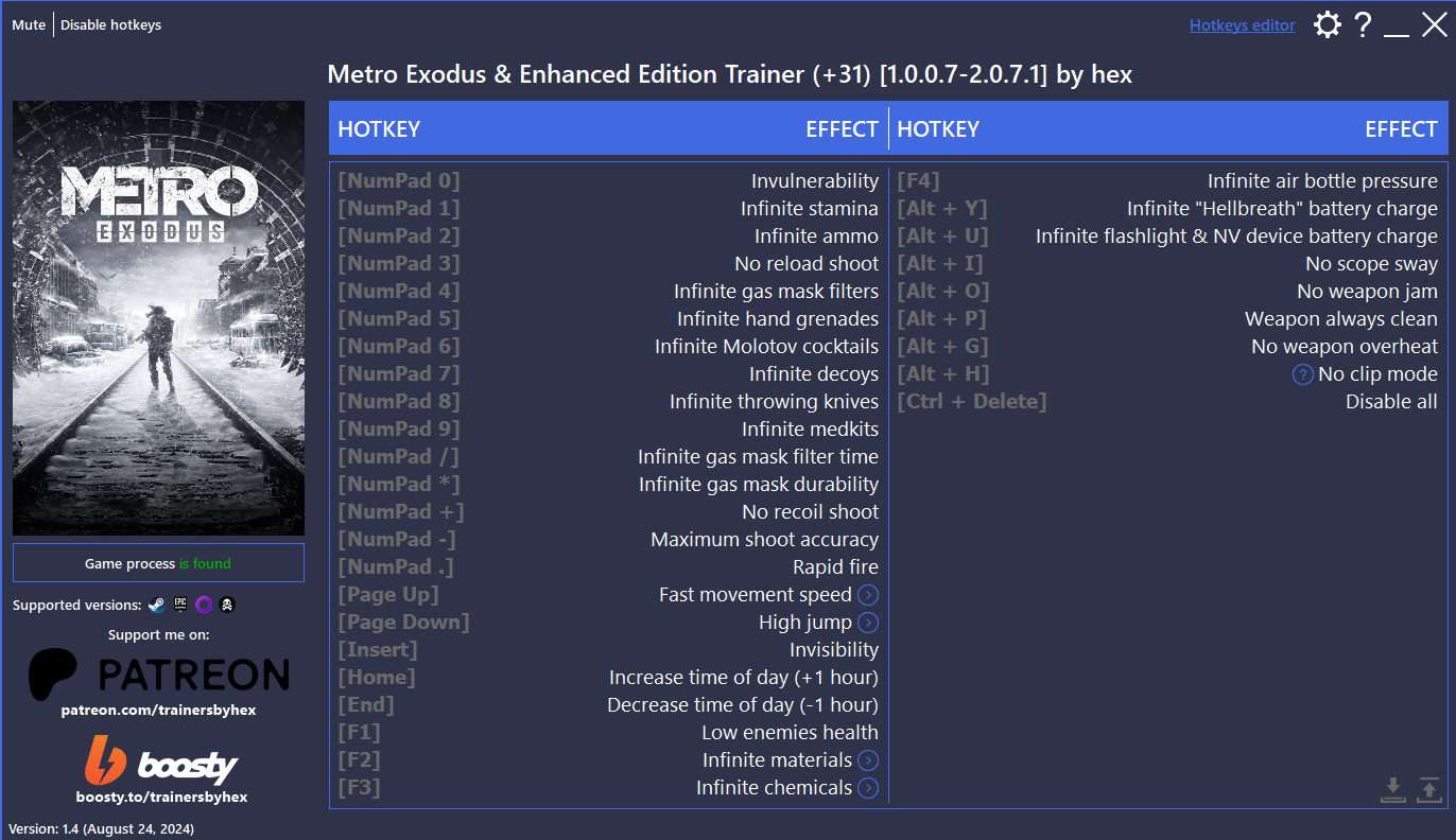 3. 게임 중 트레이너에 표시된 키를 누르시거나, 단축키를 지정해 사용할 수도 있고, 치트 넘버를 클릭해서 사용하셔도 됩니다.