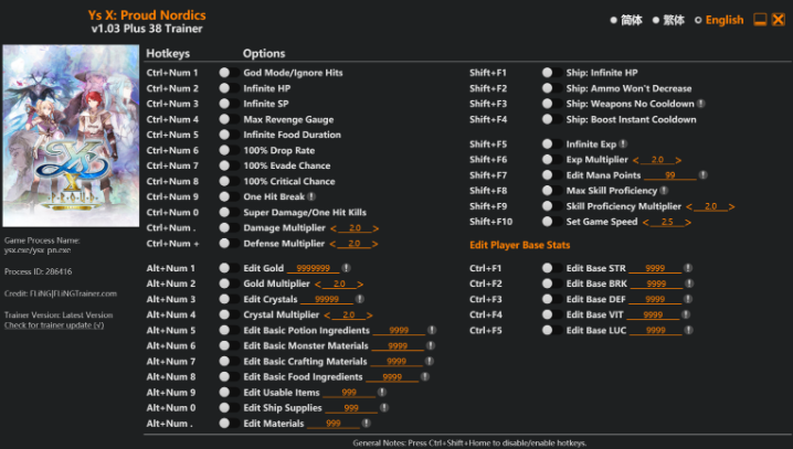- Ctrl+숫자패드 2 – 무한 체력 (Infinite HP)