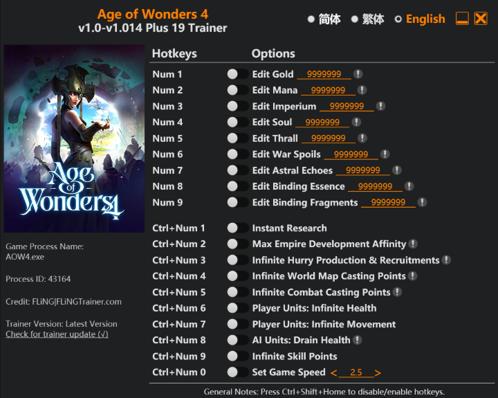 - 바이러스 백신 프로그램이 게임 코드 수정으로 인해 트레이너를 위협으로 감지할 수 있씁니다.