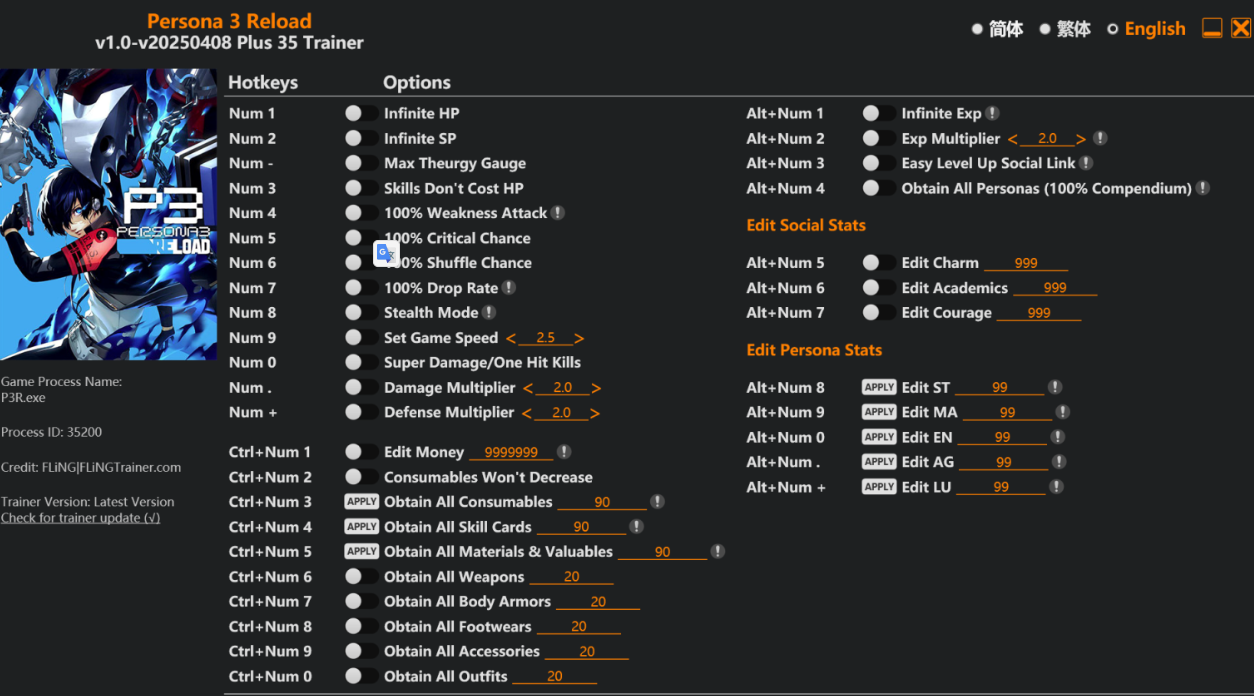 - 게임 중 트레이너에 표시된 키를 누르세요.