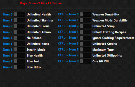 - 게임 중 트레이너에 표시된 키를 누르세요.