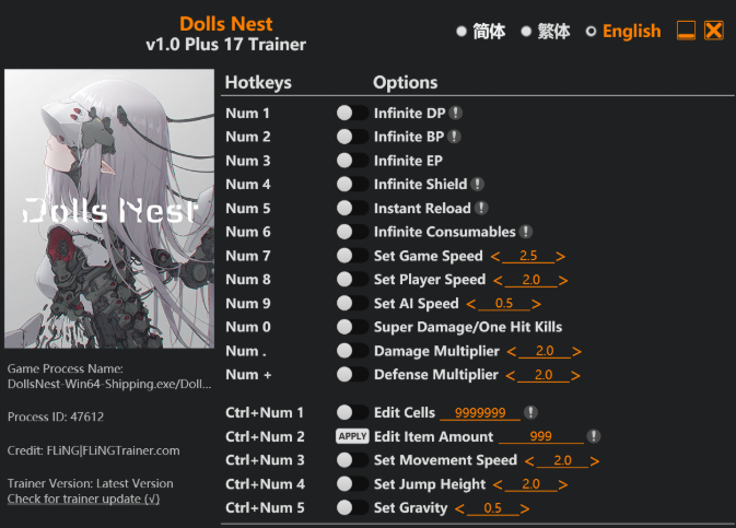 숫자패드 키:숫자패드 1 – 신 모드/타격 무시숫자패드 2 – 무한 체력숫자패드 3 – 무한 MAG숫자패드 4 – 무한 악마 체력숫자패드 5 – 무한 탄약숫자패드 6 – 즉시 스킬 재사용 대기시간숫자패드 7 – 최대 콤보숫자패드 8 – 100% 치명타율숫자패드 9 – 100% 드롭률숫자패드 0 – 스텔스 모드숫자패드 . – 슈퍼 데미지/원 히트 킬숫자패드 + – 데미지 배수숫자패드 – – 방어력 배수Ctrl + 숫자패드 키:Ctrl+숫자패드 1 – 돈 편집Ctrl+숫자패드 2 – 돈 배수Ctrl+숫자패드 3 – 모든 소모품 획득Ctrl+숫자패드 4 – 모든 재료 획득Ctrl+숫자패드 5 – 전투 아이템 감소 없음Ctrl+숫자패드 6 – 필드: 이동 속도 설정Ctrl+숫자패드 7 – 전투: 이동 속도 설정..