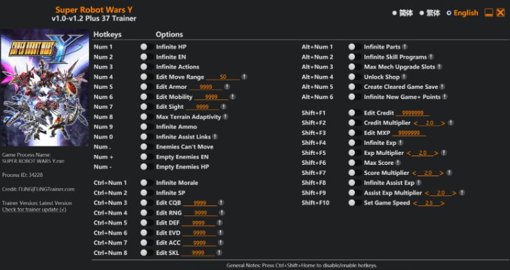 슈퍼로봇대전 Y 트레이너 최신 [SUPER ROBOT WARS Y] V1.0~v1.2 +37 TRAINER