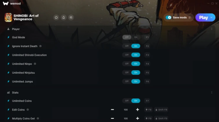 시노비 : 복수의 참격 WeMod 트레이너 (Shinobi: Art of Vengeance WeMod)